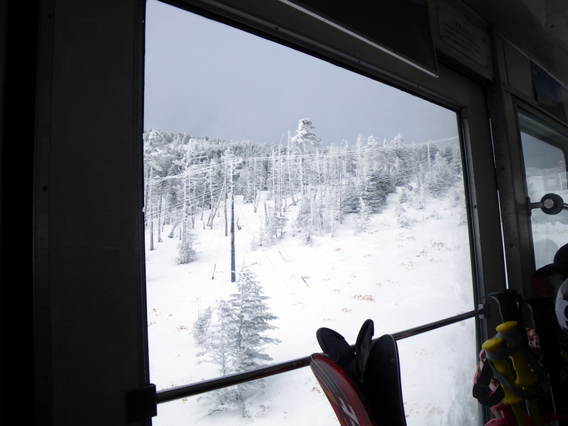駐車場に降り立ってみると、雪こそ降っていないけど思わず車の中へ戻りたくなるほどの寒さ。更には肌がキレそうな冷たい風がビュービュー。やる気が完全に萎える前に早いとこリフトに乗って無理矢理にでもテンション上げないと、寒くてやってらんない。スキー場の情報ボードによると気温はマイナス15度だとか。ひえぇぇ~、冷え~っ...