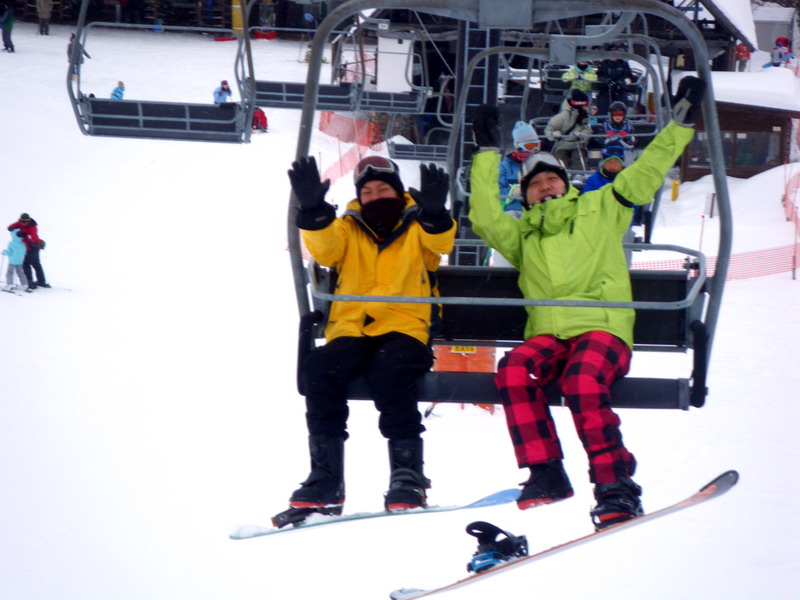 とりあえず準備を済ませてリフトへ。こちらはスノボ組。