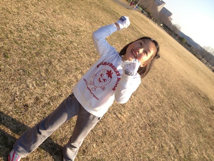 周りでも揚ってる凧を見ながら『リホのが一番高いね!』とご満悦。