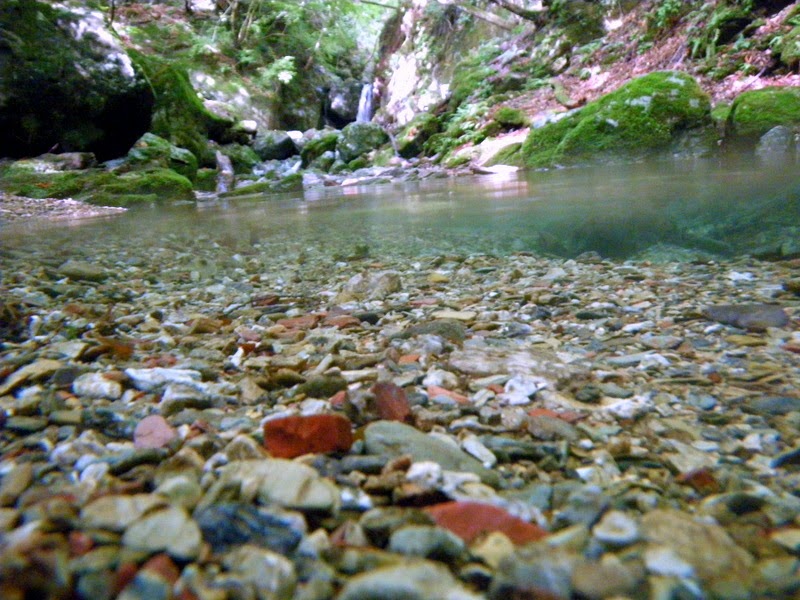 画像半分から下が沢の水中。冷たく透き通って気持ちイイ。