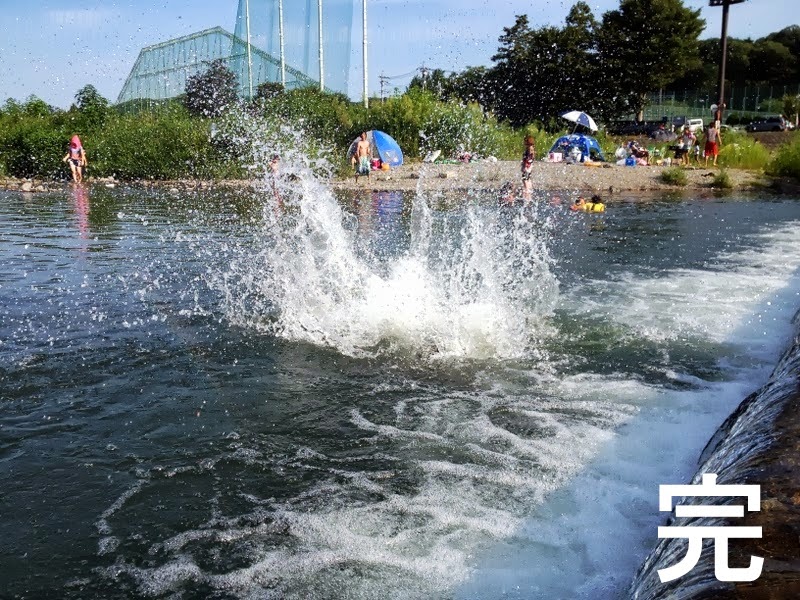 買い替えたビーチテントの試し張りもかねて秋川へザブンと。