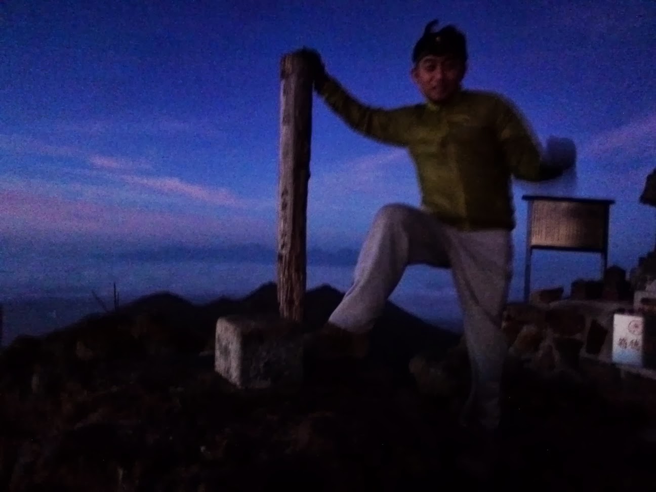 1等三角点に手を掛けながら朝陽を眺めるなんて最高だな。