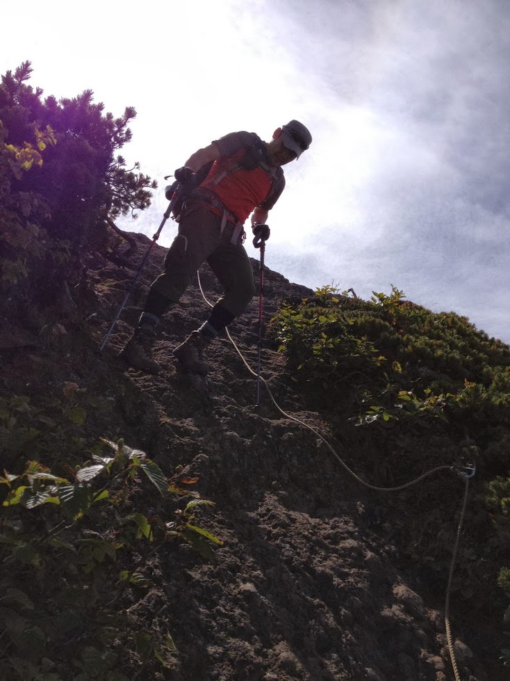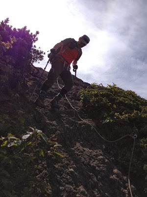 山荘を出てすぐにクサリ&激下りが歓迎。