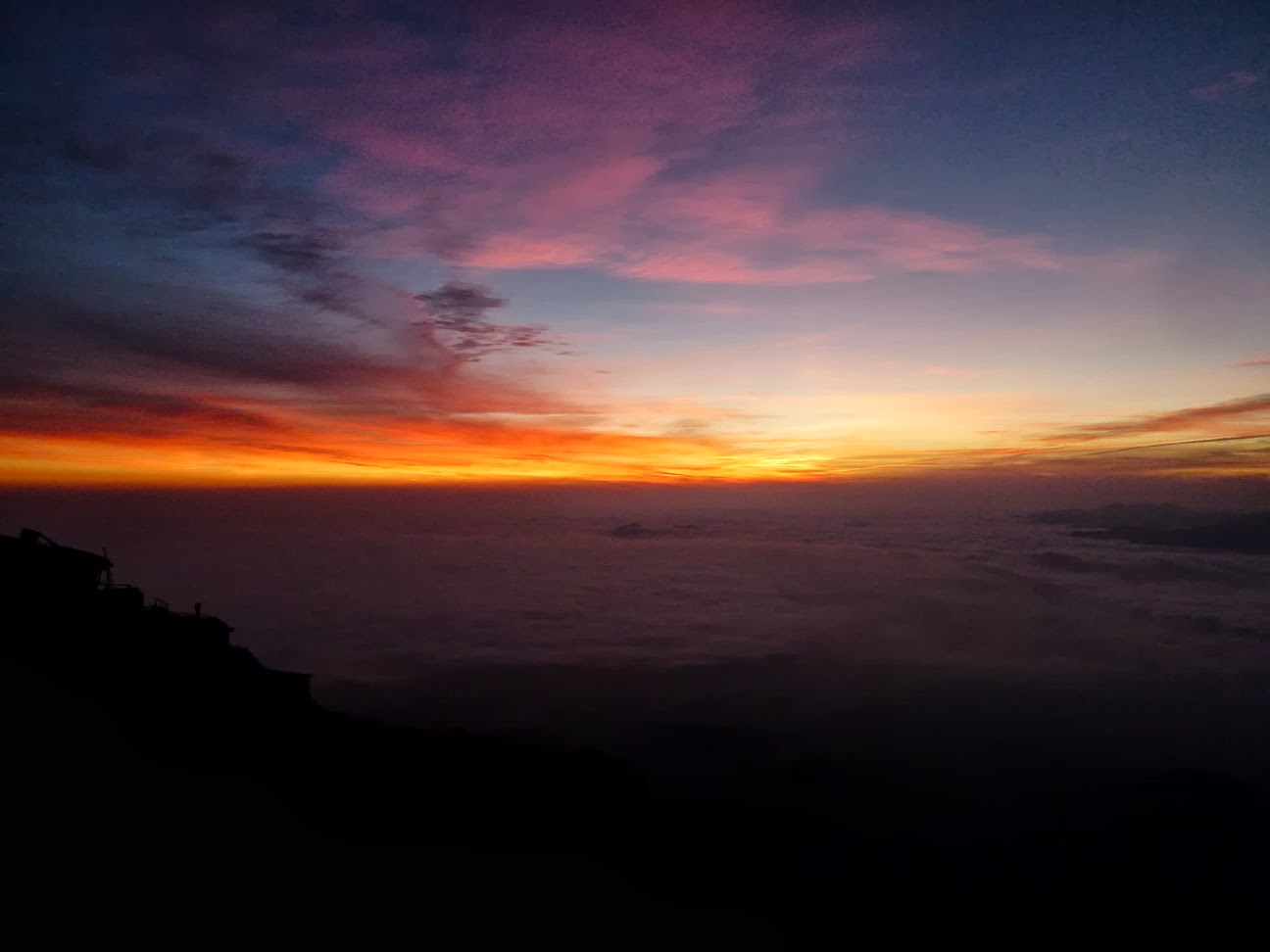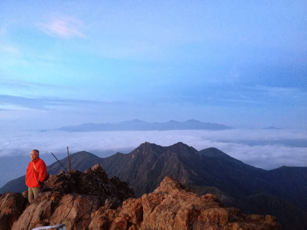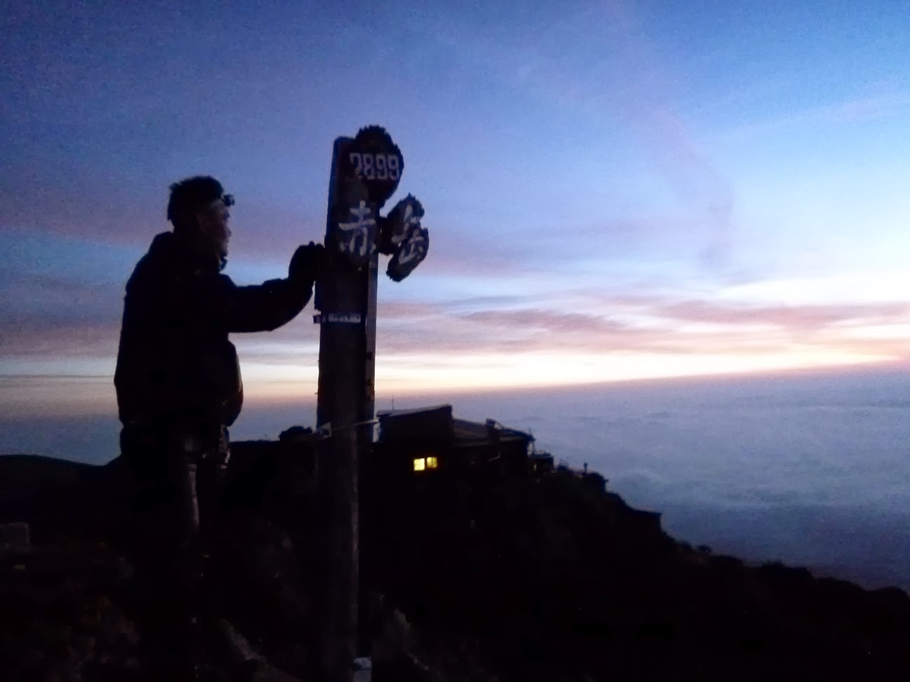 八ヶ岳最高峰の山頂からご来光スタンバイ。
