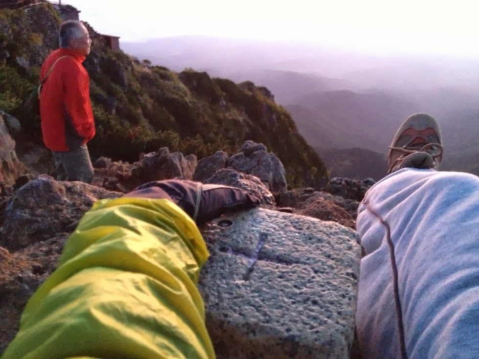 で、耳栓を両耳に突っ込んではみたんだけど、日付が変わる頃になっても一向にワタシの睡魔サンがお見えにならないのであります。ココまで登った充実感とか、切り立った岩をビビりながら越えて来た興奮とか、眠れない要素がたくさんあったんだろうなぁ。
