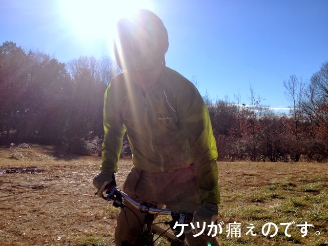 ちょっとキツめの斜面でズルズル....ガシャン!とケツから強打。