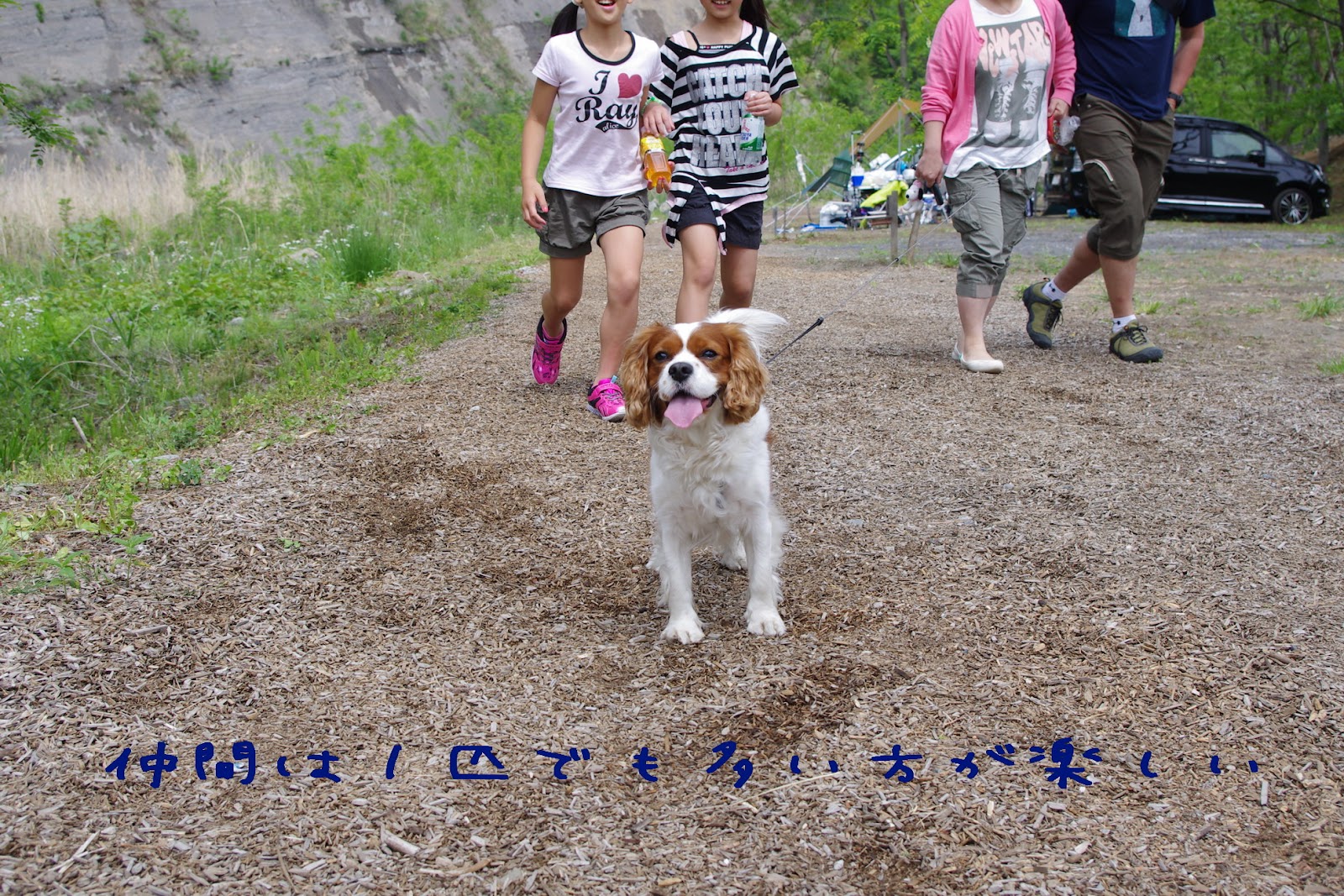 キャンプ場に到着したら真っ先に向かうのは看板犬のクゥちゃん。