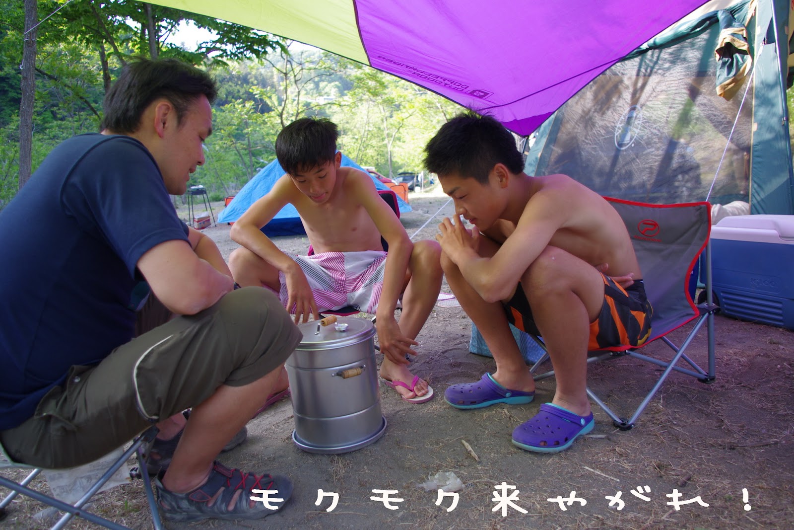 木陰が多い川沿いのサイトを選んだけど、かなり暑い。