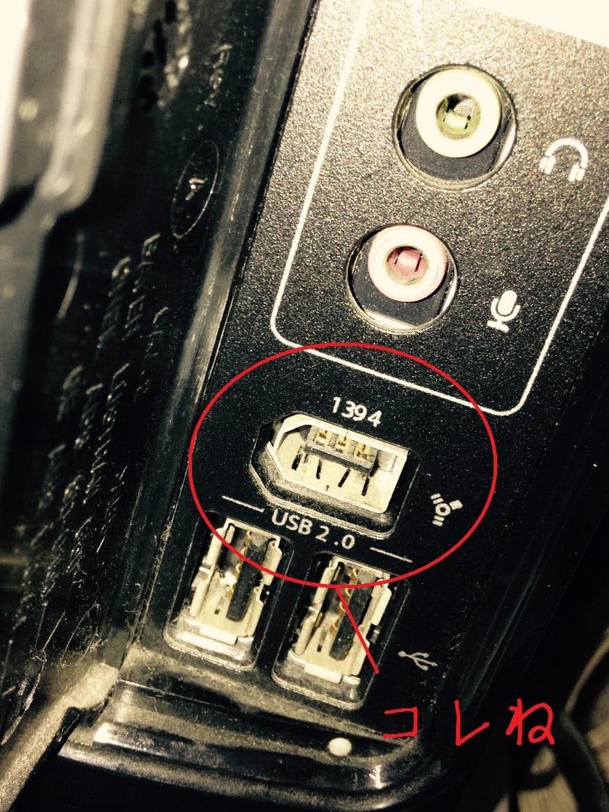 IEEE1394、DV端子、i-Link、FireWire..とか色んな呼び名があるチョイと懐かしいこの端子はminiDVの動画を取り込むのに使うモノ。コレが我が家のPCに付いてた事にビックリ。PC本体前面にある小さなドアの中に隠れてたんだけど、あんまり開く機会がないからな〜ココ。