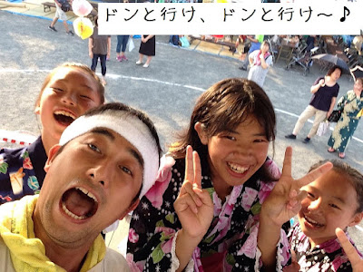 夏ガキスマイルたちと櫓の上でホームラン音頭。
