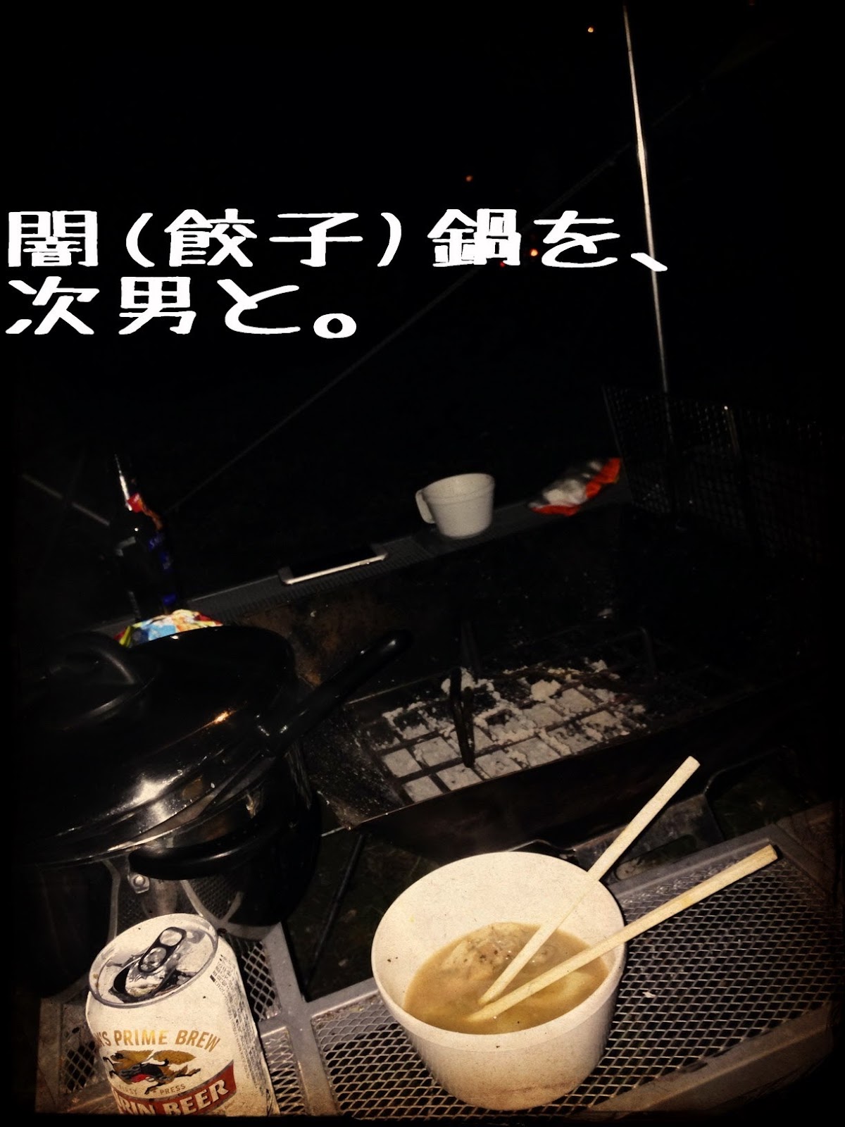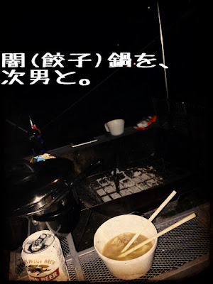 2人で星を見上げながら闇鍋(水餃子)