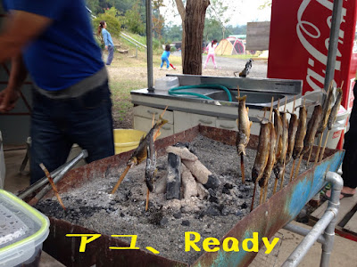 スタッフのオッちゃんが旨そうなアユで迎え撃ち