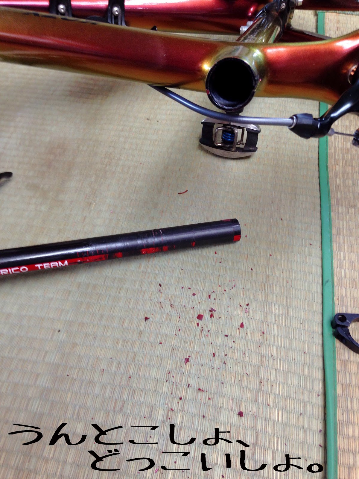 格闘することおよそなんと2時間。とうとうカブシートポストが抜けました。