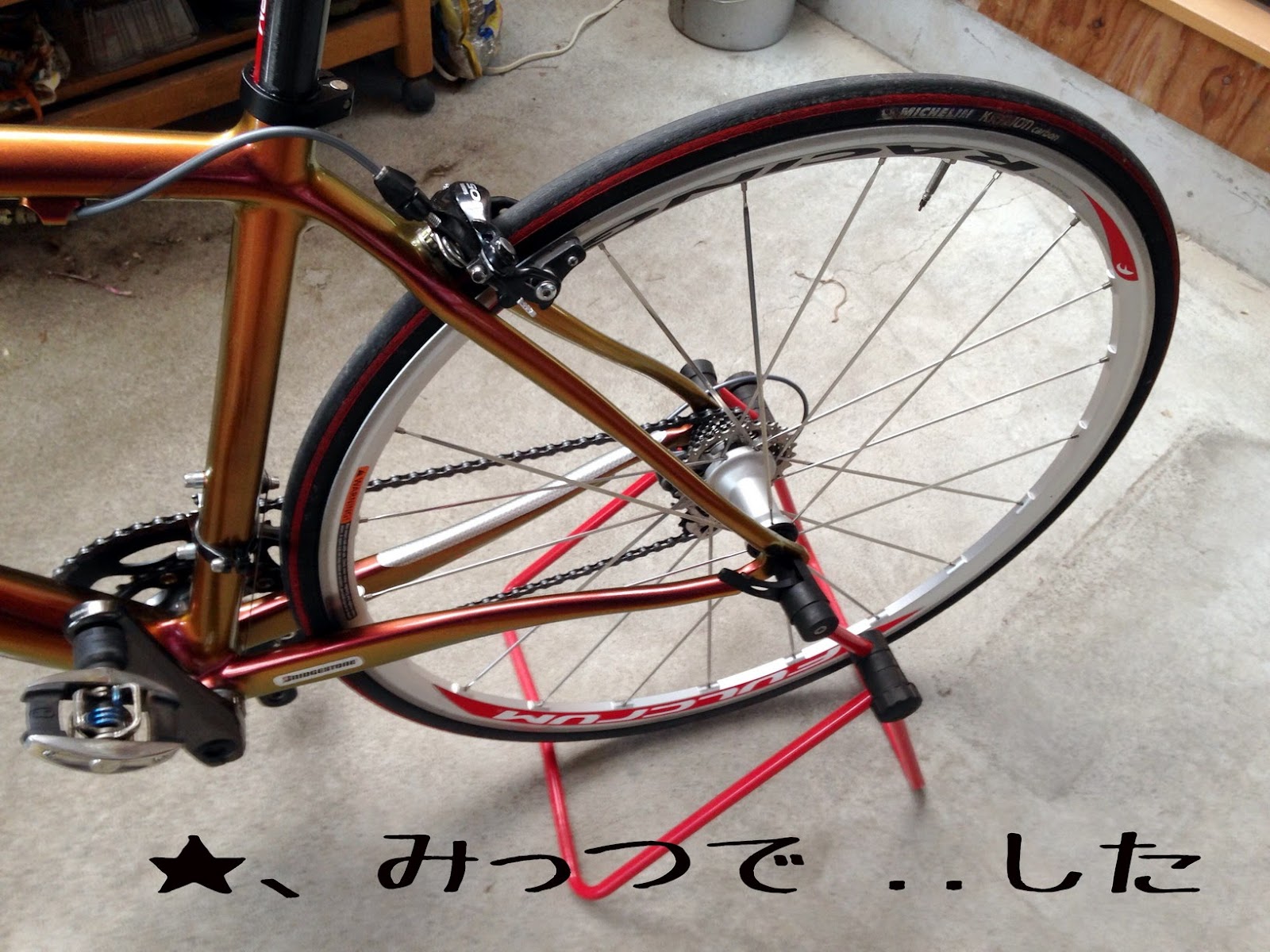 ようやく前後輪に履かせ終わった数日後でした(涙。