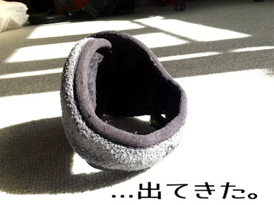 チャリ遊びバッグの下にペチャンコ姿で発見。