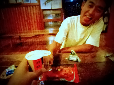 途中で買った地元の酒“御柱”で乾杯!。