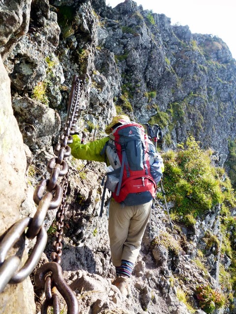 薄い稜線の両側にクサリが打ってあるのです。
