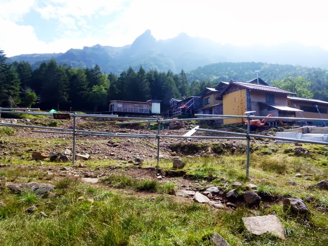 今日はあの山頂にある山荘で1泊するのさ。